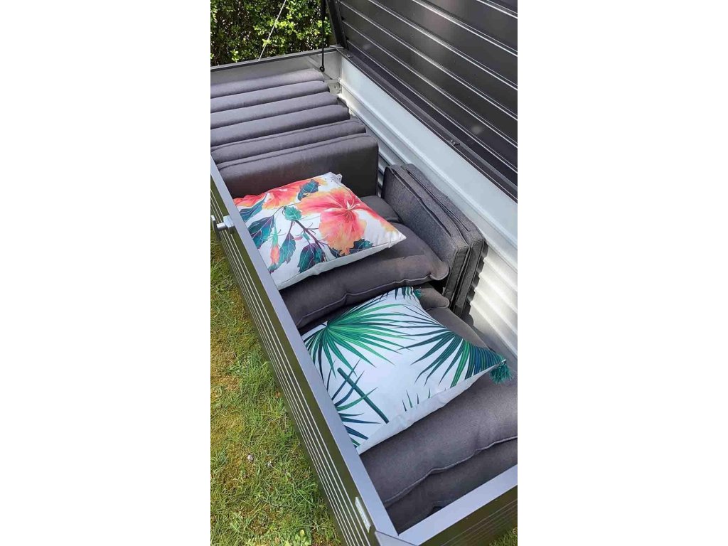 Stylový úložný box FreizeitBox prémiové kvality, který vyhovuje i nárokům moderní architektury je ideální k uložení sedáků, lehátek, skládacích židlí, hraček, sportovních a kempingových doplňků. Box je široký 181 cm a79 cm hluboký. Úložné boxy FreizeitBox nabízíme v pěti barevných provedeních a čtyřech velikostech. Díky tomu se může stát FreizetBox i designovým prvkem na vaší zahradě, terase, u bazénu nebo v pergole.