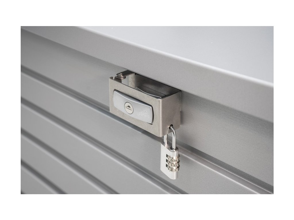 Se základním vybavením vaše možnosti nekončí. V případě, že neočekáváte žádné zásilky, sponu s visacím zámkem můžete z boxu odstranit a používat ho jako úložní zahradní box. Pro tento případ v nabídce volitelného příslušenství najdete další praktické pomocníky jako např. síť na víko, nebo závěsný koš. Díky tomu si box můžete ještě více uzpůsobit vlastním představám a mnohostrannému využití.